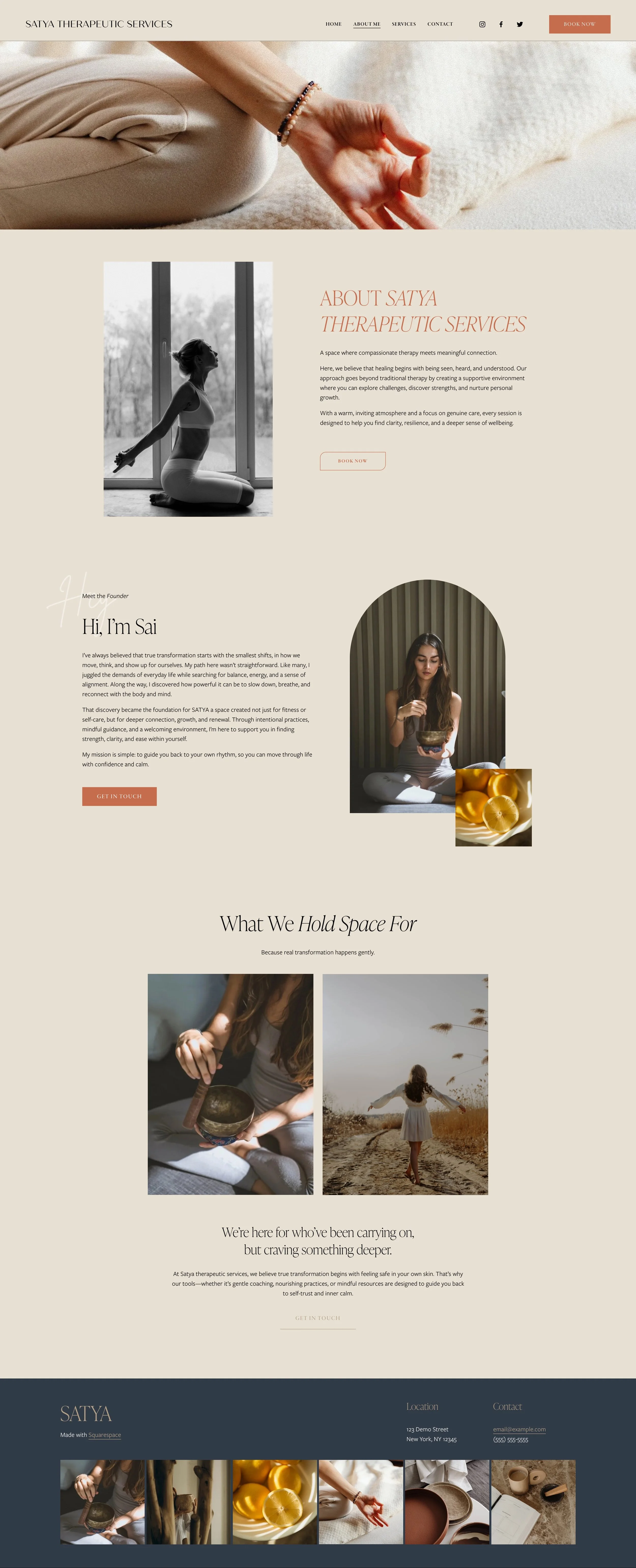 THE STORY: Satya Therapeutic Services, founded by Sai, offers online wellness and therapy services designed to help clients feel supported, safe, and guided through self-reflection. When Sai approached me, she needed a website that reflected her therapeutic philosophy, created trust for online visitors, and converted curiosity into bookings.